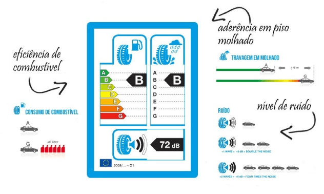 Dado que muitas pessoas não estão familiarizadas com os valores em decibéis, a classe de ruído também é apresentada. Esta classifica o pneu em relação aos futuros limites europeus de ruído dos penus.