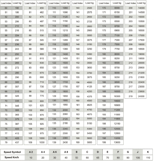 A carga do pneu multiplicada por 2 deve cobrir a carga total do eixo do seu veículo. Para conhecer o seu índice de carga, basta tomar nota do mesmo no flanco de um dos pneus e de o comparar com a tabela dos índices de peso.